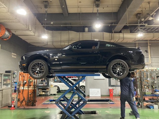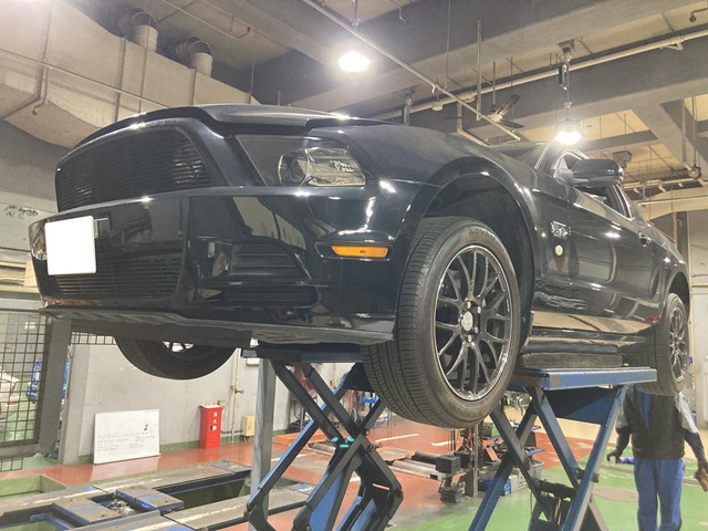 本日はマスタングのマフラー交換です。こちらのマスタングは車検NGの社外マフラーが装着されており、純正に戻さないと公道を走行できない状態でした。。。当店では違法改造車のご入庫はお断りさせていただいております。こちらのマスタングは純正マフラーに戻して継続車検の予定でしたが、純正マフラーの供給が終了しており、少しアセりましたが何とか入手できて一安心でした。