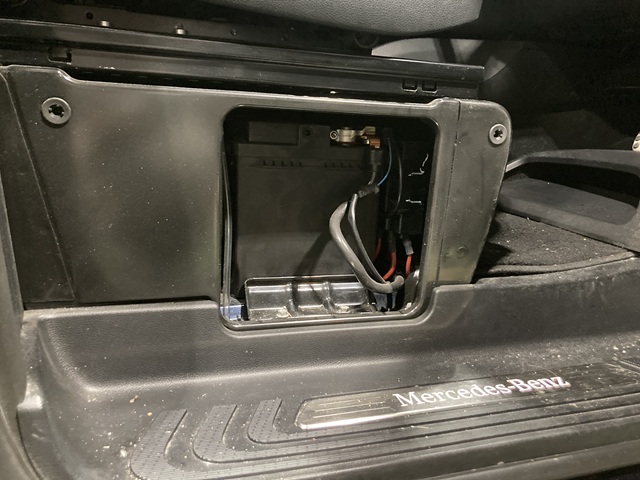 Vクラスは運転席の下にバッテリーが配置されているので横から引き抜く仕様ですね。こと時しっかりと絶縁しておかないとショートしてしまうので注意です。