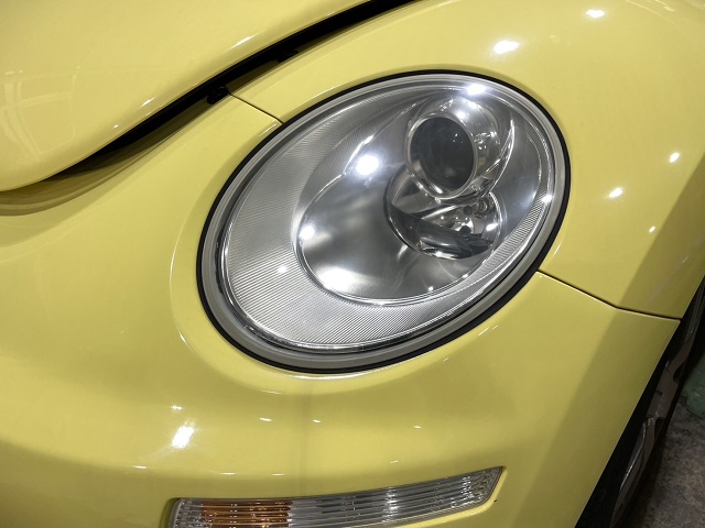 さらに、フロントライトの光量も基準外でNG。。。一見綺麗に見えますが、プロジェクター内部の曇りが原因です。エルボーラインも確認できない状態でしたのでこちらも本体Assyで交換させていただく事にしました。部品が揃い次第作業再開です。大切に乗られているビートルなので完璧に仕上げたいと思います。