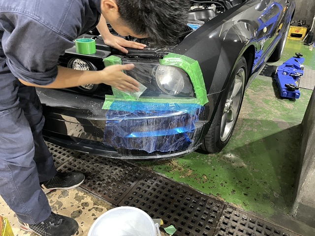 マスタング ヘッドライト磨き