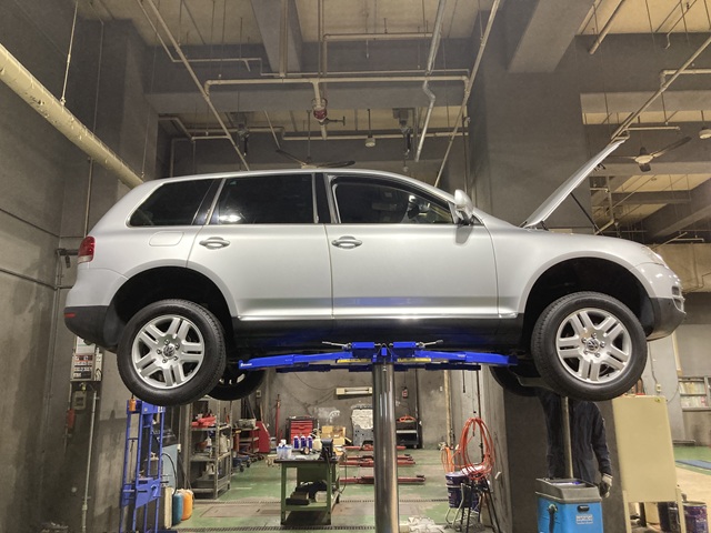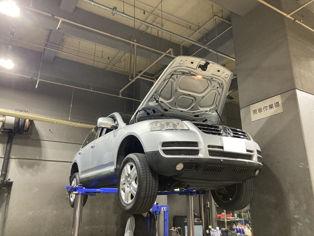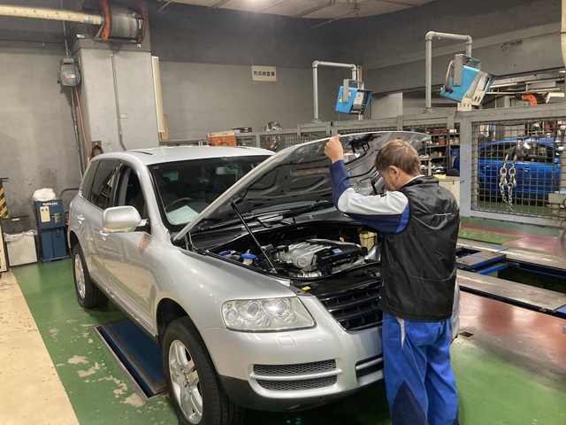 今回はトゥアレグの1年点検です。街中で見かけるのも少なくなってきたトゥアレグですが、オーナー様の愛情が感じられるピカピカの車両でした。今回はオイル交換とエアコンのポーレンフィルターの交換もご依頼いただきました。