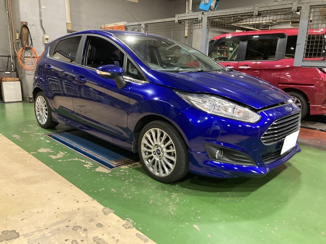 本日はフィエスタのフロントブレーキパッド交換です。遠方よりご来店いただきまして誠にありがとうございます。
