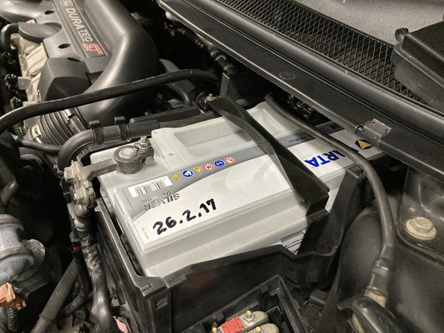 本日はフォーカスSTのバッテリー交換作業です。ご自宅駐車場でバッテリーがあがってしまったとの事です。今回はVARTAバッテリーをご用意させていただきました。
